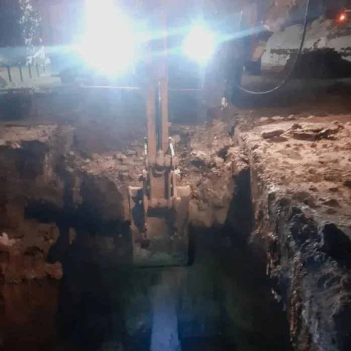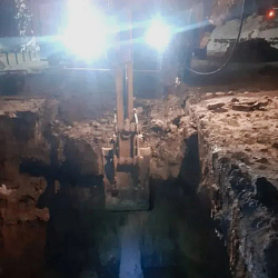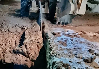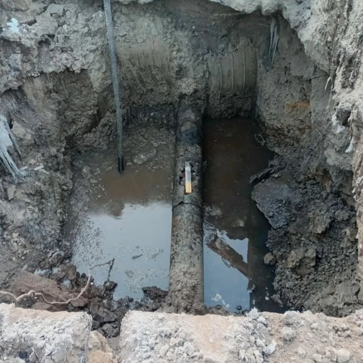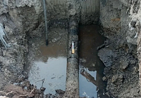При производстве работ по проспекту 50 лет Октября, 110а специалистами предприятия было выявлено повреждение – долевая лопина на чугунном трубопроводе d 300 мм. Принято решение о замене аварийного участка.