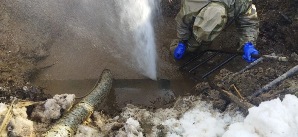 В настоящее время ведется комплекс мероприятий по ликвидации аварийной ситуации - определено место повреждения, расчищена площадка, ведется разработка котлована для непосредственного проведения ремонтных работ.
