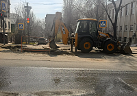 Продолжается разработка котлована на месте повреждения для доступа к коммуникациям, для дальнейшего демонтажа поврежденного и подготовке нового участка.