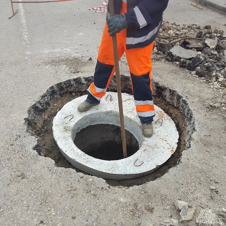 В ходе работ заменили бетонные кольца и часть кирпичной кладки, плиты перекрытия, восстановили асфальтовое покрытие вокруг колодцев, а также обработали специальными герметиками от небольших трещин и сколов.